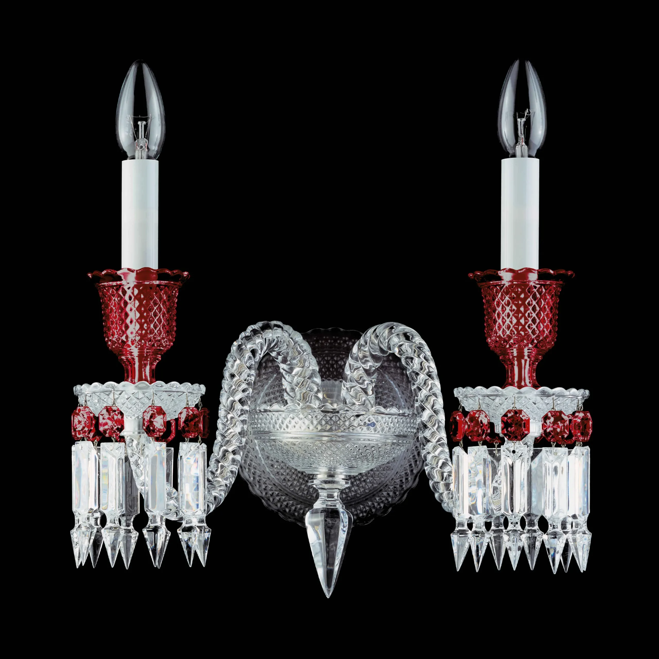 La pampille octogonale rouge rubis qui signe chaque lustre Baccarat se décuple pour habiller de mille feux l’applique Zénith clair et rouge dans un jeu de lumière unique et extraordinaire. La force du rouge tient à la magie d’une fusion entre le cristal clair et de la poudre d’or 24 carats, donnant à la matière cette incandescence vermillon : le cristal rouge Baccarat rayonne en un camaïeu de mille feux, du plus rosé au plus amarante, dont les miroitements révèlent un savoir-faire autant qu’une passion. Une création qui fait écho aux somptueux luminaires de couleur du Palais du Dolmabahçe à Istanbul qui possède la plus grande collection au monde de lustres Baccarat.