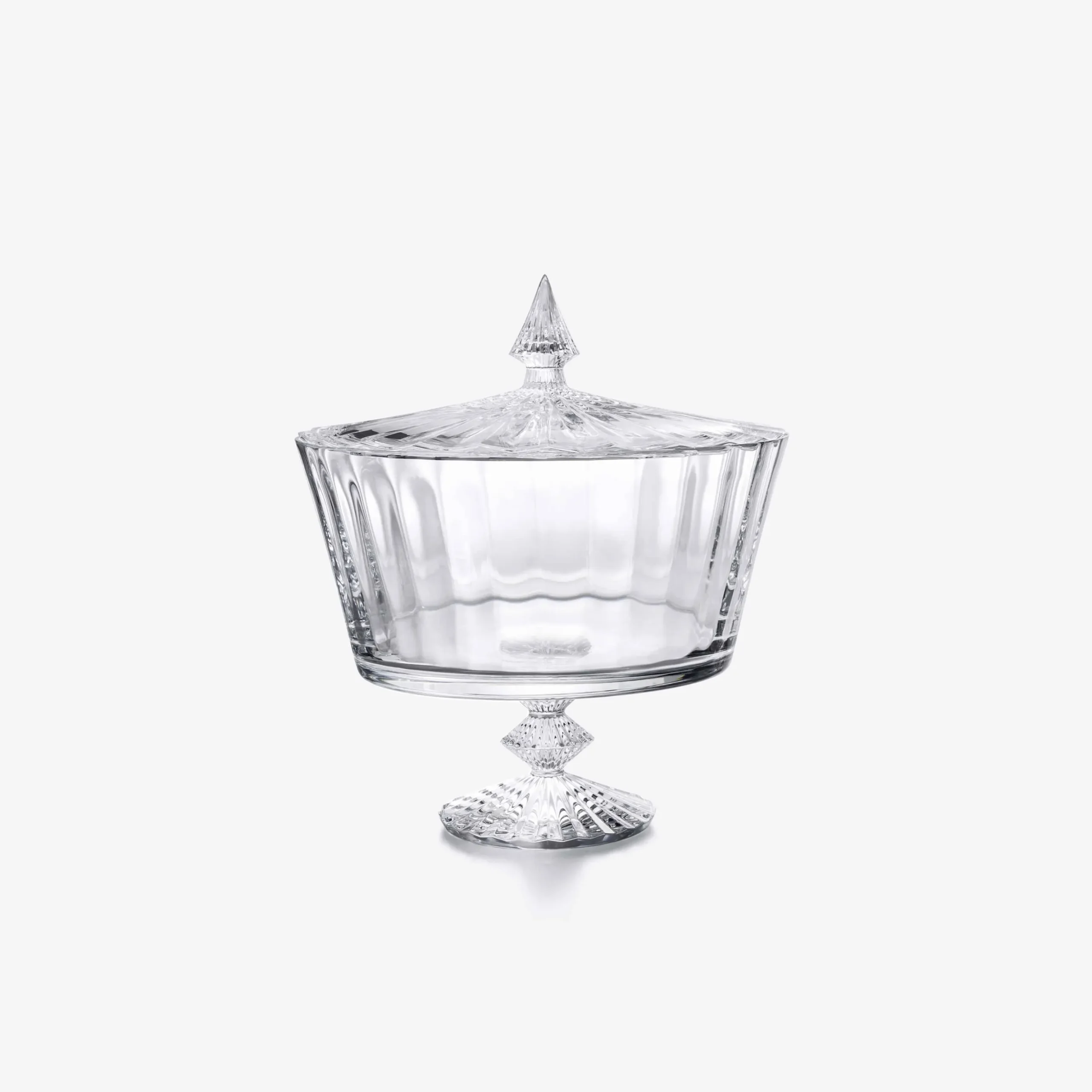 La bonbonnière basse Mille Nuits en cristal clair est rythmée de subtiles côtes vénitiennes sur toute sa paraison et évoque par son élégance le charme et l’opulence des palais orientaux. Dessinée par Mathias pour Baccarat, la collection Mille Nuits comprend également des verres et des articles pour la table ainsi que des luminaires.
