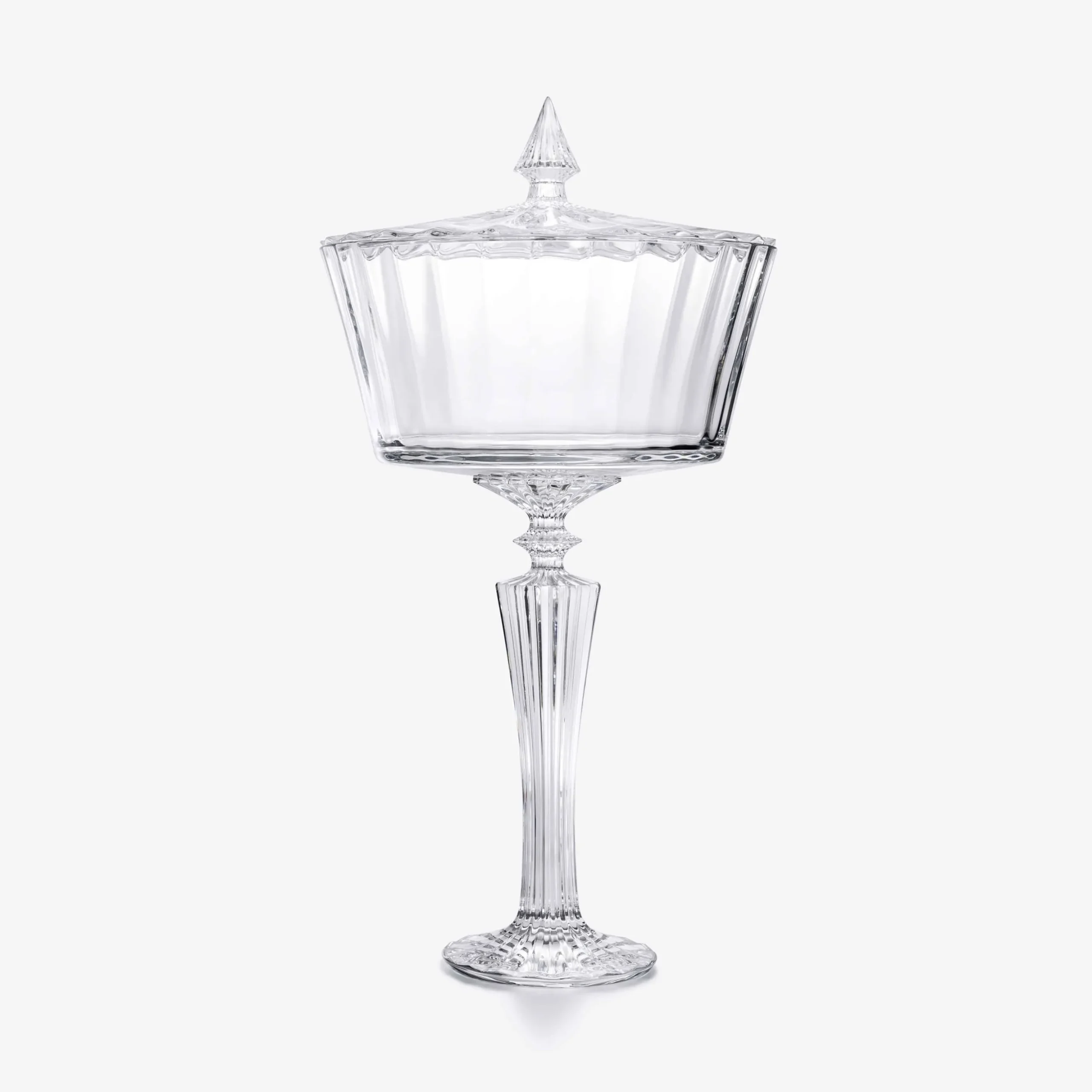 La bonbonnière haute Mille Nuits en cristal clair est rythmée de subtiles côtes vénitiennes sur toute sa paraison et évoque par son élégance le charme et l’opulence des palais orientaux. Dessinée par Mathias pour Baccarat, la collection Mille Nuits comprend également des verres et des articles pour la table ainsi que des luminaires.