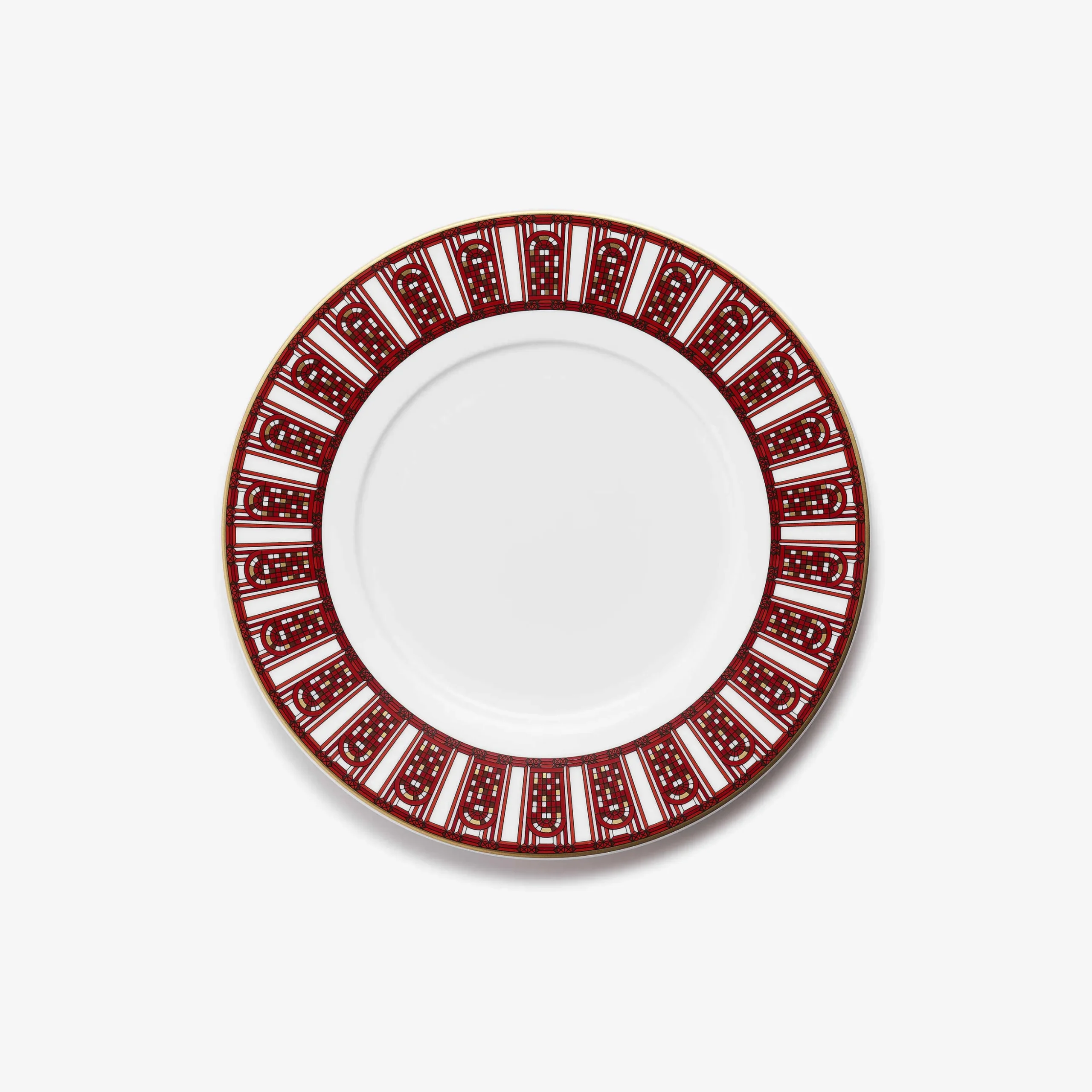 La collection Arcadia Rouge est un service en porcelaine comprenant quatre tailles d’assiettes et une timbale. Ornée du motif Arcadia, la porcelaine blanche éclatante est rehaussée du rouge signature de Baccarat et de précieuses touches d’or. Ode à la joie de vivre, le service Arcadia Rouge s’accorde harmonieusement avec les créations en cristal de la Maison, accompagnant tous les moments de partage et de célébration. Arcadia est le motif inspiré par les fenêtres en arches de la manufacture de Baccarat, célébrant ce qui se déroule derrière elles, où depuis des générations, des artisans passionnés créent des chefs-d’œuvre exceptionnels pour enchanter le monde.