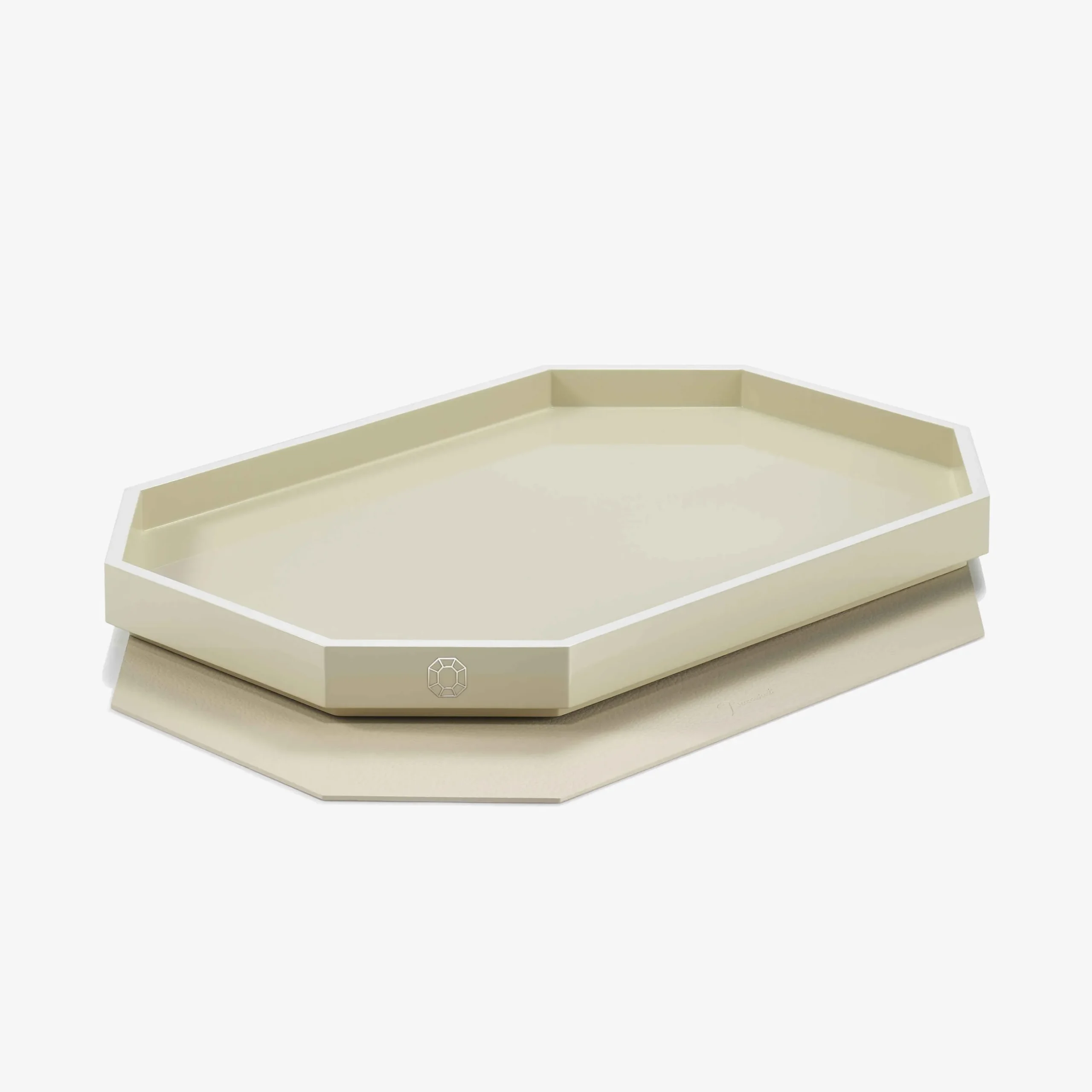 Le plateau Octogone est une création laquée disponible en trois tailles. Inspirée par la pampille octogonale rouge, signature emblématique de Baccarat, une série d’accessoires en laque raffinée vient agrandir la collection Octogone. Le plateau, en forme d’octogone, est méticuleusement confectionné à la main grâce à un savoir-faire ancestral. Sa surface brillante capte la lumière et met en valeur les pièces en cristal de la Maison. Chaque plateau s’accompagne d’un insert en cuir amovible, ajoutant un élégant contraste de matières et de textures. Le plateau Octogone existe dans une variété de nuances, enrichies au fil des saisons et assorties au dessous de verre de la même collection.