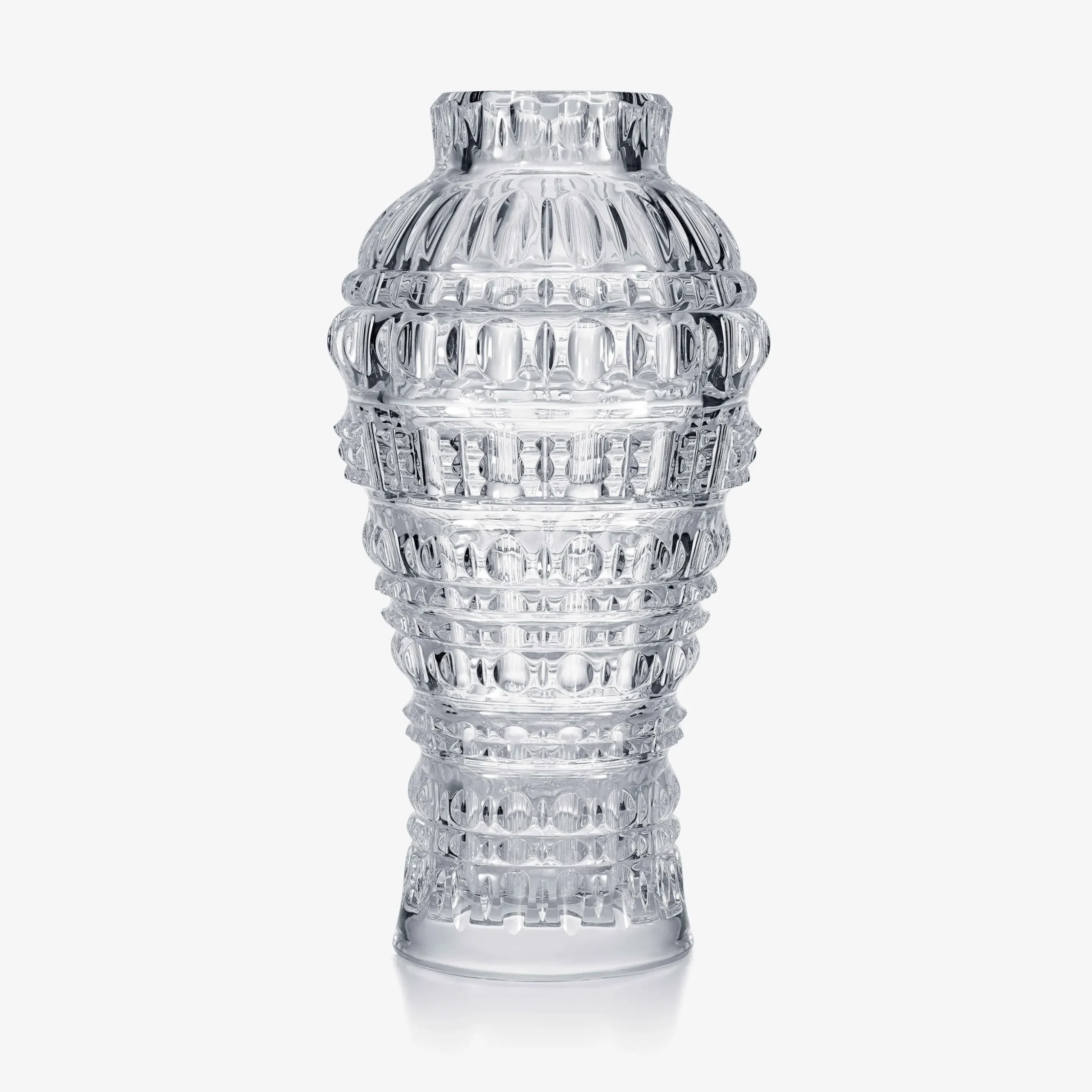 Inspiré de la silhouette d’amphores asiatiques en porcelaine, le vase Amphora mêle audacieusement tradition et innovation. L’élégance intemporelle de ses lignes se conjugue au motif de taille New Antique qui renvoie la lumière dans un jeu de reflets infinis. Cette création aussi éblouissante avec ou sans fleur, fusionne deux vases en un pour s’adapter à toutes les envies.